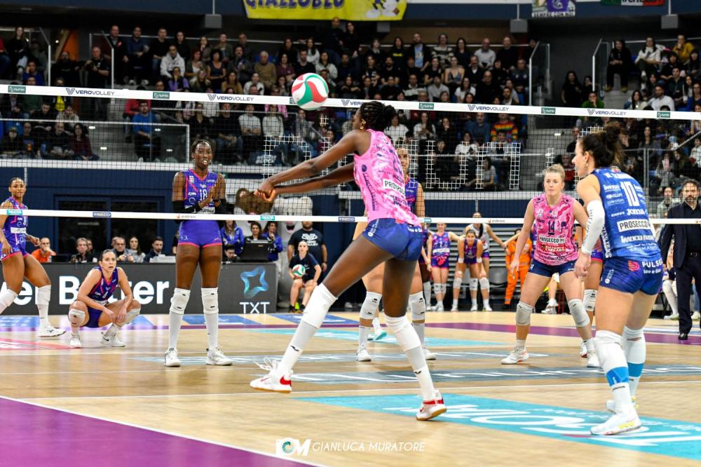 Botta e risposta in avvio di terzo parziale, con il murone di Kurtagic che spezza gli equilibri e porta Milano sul 9-7. Dentro Sillah su Zhu per Conegliano che ritrova il comando (10-11). Torna in testa Vero Volley che si aggiudica il mega rally che vale il +2 (15-13), ma l’Imoco rimane in scia. Ripropone il cambio in diagonale coach Lavarini ma arriva la reazione delle Pantere che rimettono la testa avanti (17-19). Punto a punto nel finale, con l’attacco di Egonu che porta il set ai vantaggi: alla sesta occasione è Milano, con il suo capitano Egonu, a chiudere 31-29.